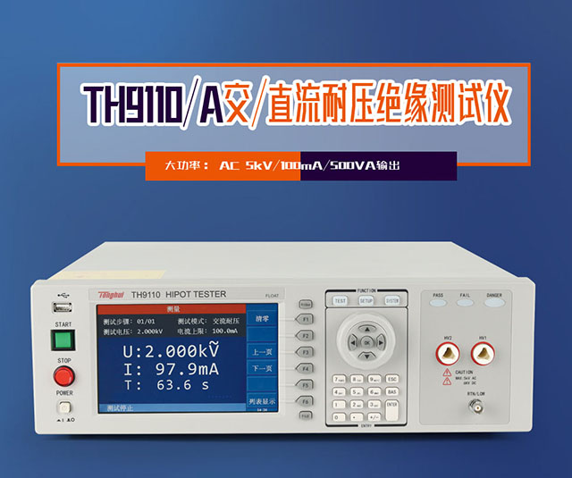 TH9110/TH9110A交直流耐壓/絕緣電阻測(cè)試儀是同惠電子多年電氣安規(guī)測(cè)試儀器設(shè)計(jì)的成果,最新設(shè)計(jì)了500VA大功率,最大輸出交流5kV/100mA,這不僅符合大功率耐壓測(cè)試需求,而且符合了EN50191的設(shè)備安全標(biāo)準(zhǔn)。