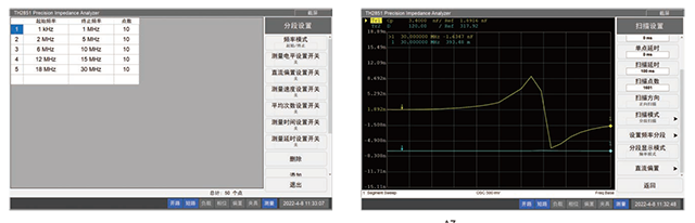 曲線分選功能:可以對(duì)掃描曲線全部或者部分區(qū)域的測(cè)試值進(jìn)行合格/不合格判斷,常用于諧振曲線篩選如壓電元件等諧振頻率篩選。