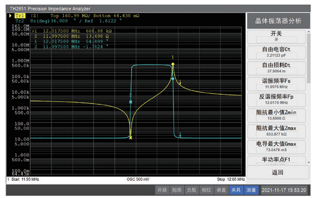 晶體振蕩器分析:對(duì)壓電陶瓷等晶體進(jìn)行測(cè)量以及性能分析,測(cè)量計(jì)算后獲取晶體的諧振頻率、反諧振頻率、品質(zhì)因數(shù)等重要參數(shù)。