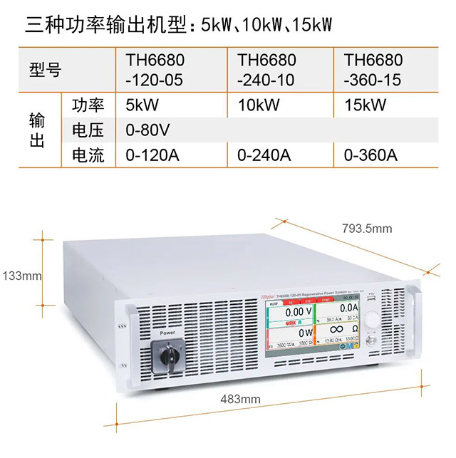 TH6600系列雙向回饋式大功率直流電源輸出和吸收電流時可快速無縫切換,有效避免電壓或電流過沖,適用于電池、電池封裝以及電池保護(hù)板等儲能設(shè)備測試。