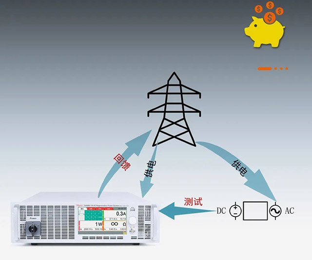TH6600系列雙向回饋式大功率直流電源作為負(fù)載時具有回饋式能量吸收功能,高達(dá)92.5%的能量回饋效率,可將電能直接返回用電網(wǎng)絡(luò)后直接利用,而非普通電源一樣直接以熱能消耗,大大降低了用戶的用電成本。