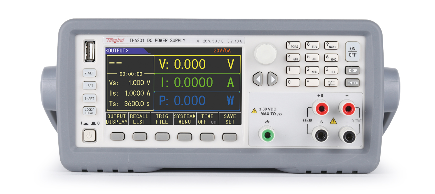 ■ 旋鈕和數(shù)字鍵盤設置電壓、電流、輸出時間
