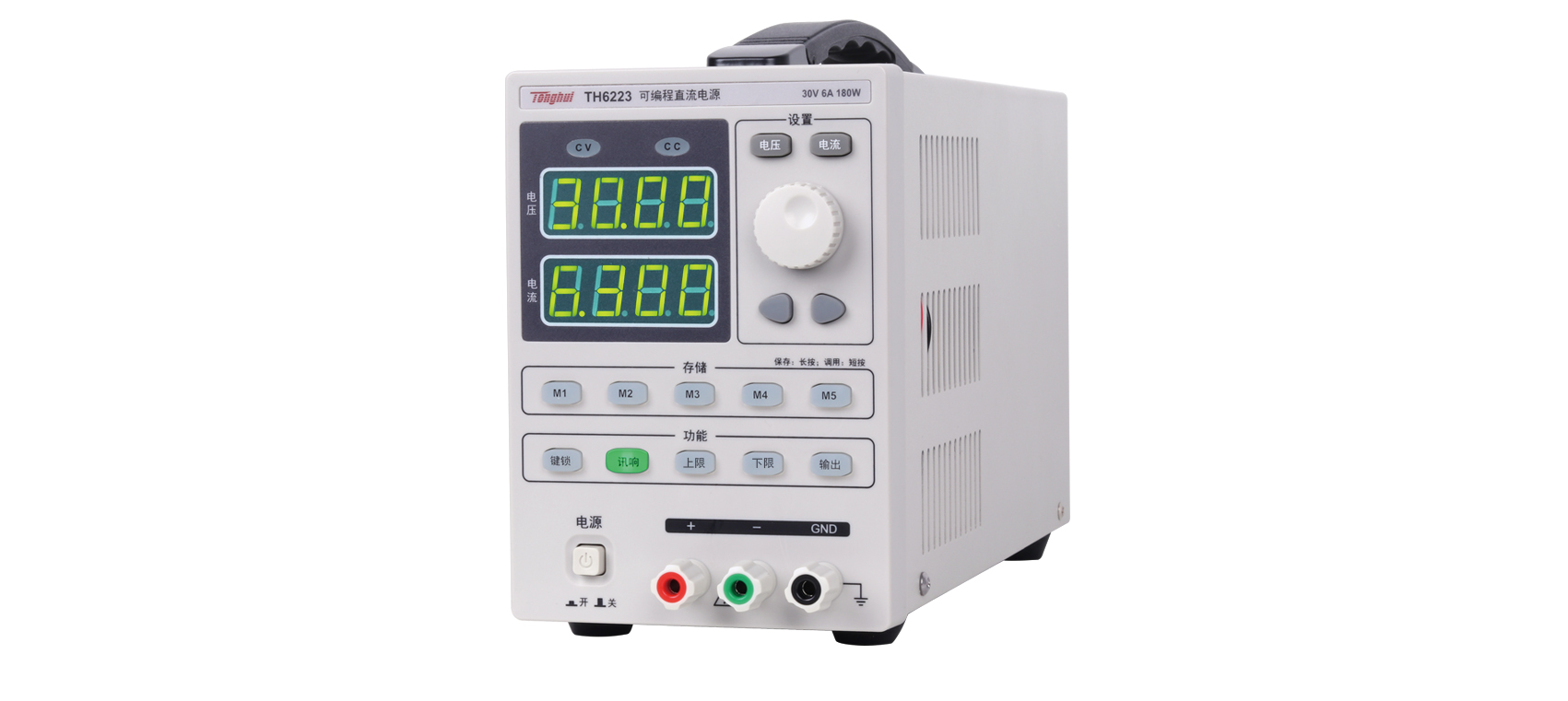 TH6220系列線性程控電源面板設(shè)置合理清晰,電壓/電流快速切換按鈕配合光標(biāo)移動鍵、調(diào)節(jié)及確認旋鈕,可以快速的設(shè)置需要的電壓電流值。