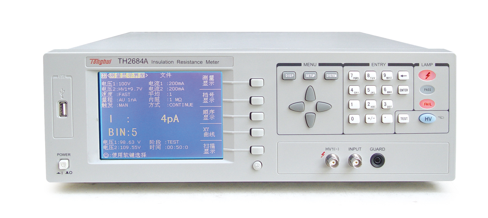 ■ TH2684型高精度絕緣電阻測(cè)試儀是一款能快速測(cè)量電子元器件,介質(zhì)材料,設(shè)備和電線電纜等絕緣性能的智能化測(cè)量?jī)x器。采用大尺寸的液晶,人性化的菜單布局,使用戶可更方便的操作儀器。