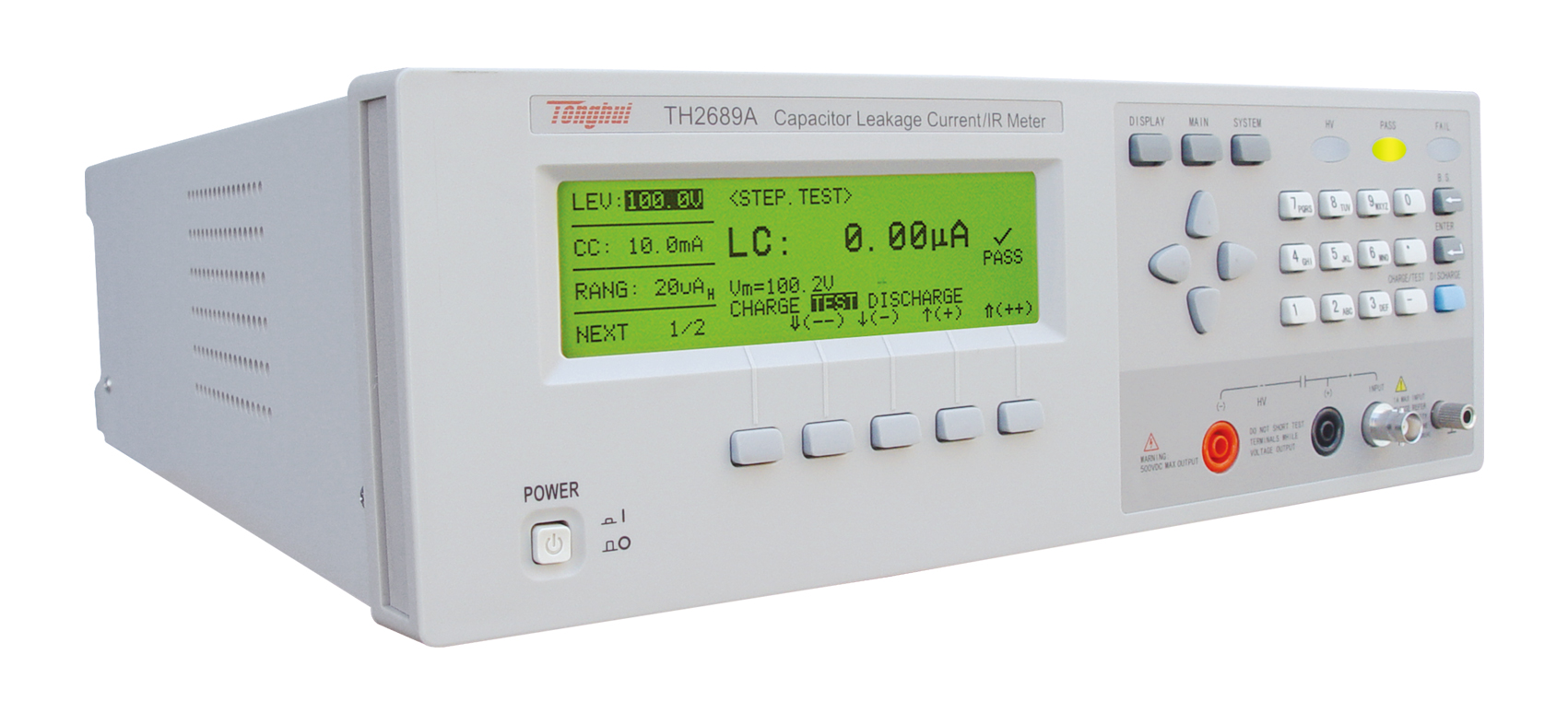 TH2689A型電容器漏電流/絕緣電阻測試儀分別提供最大測試電壓:500V,充電電流0.5mA~500mA(>100V時由最大輸出功率50W限制)。主要應用于電解電容/陶瓷電容等漏電流,絕緣電阻及鋁電解電容陽極箔耐壓測試。也可應用突波吸收器,齊納二極管,氖燈管等動作電壓確認和漏電流測試。標配了RS232、Handler接口,可選購的GPIB接口,以及穩(wěn)定快速的測量,使TH2689不僅可以應用于進貨檢驗,更可應用于自動化生產測試等等。