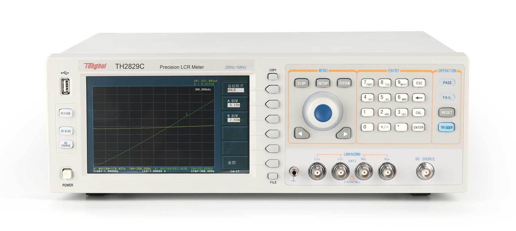 得益于新一代處理器的應(yīng)用,使儀器具有了更強(qiáng)大的數(shù)據(jù)處理能力,可將測試結(jié)果方便地存儲于U盤或通過多種接口上傳至上位PC或網(wǎng)絡(luò),推進(jìn)測試自動化,提高測試效率。本系列測試頻率最高為:20Hz-1MHz。具有0.05%的測試準(zhǔn)確度、9ms/次的最高測試速度。儀器配有HANDLER、USB、LAN、RS232C 、DCI、GPIB(選配)等豐富的接口,無不彰顯豐富的資源,將帶給客戶較好的性價(jià)比體驗(yàn)。