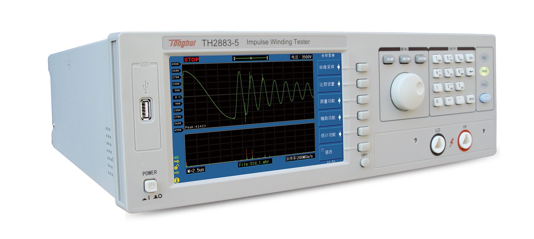 TH2883系列產(chǎn)品標配USBHost、RS232C、USB Device和LAN接口,既方便您圖形的快速保存,又方便您進行遠程控制。