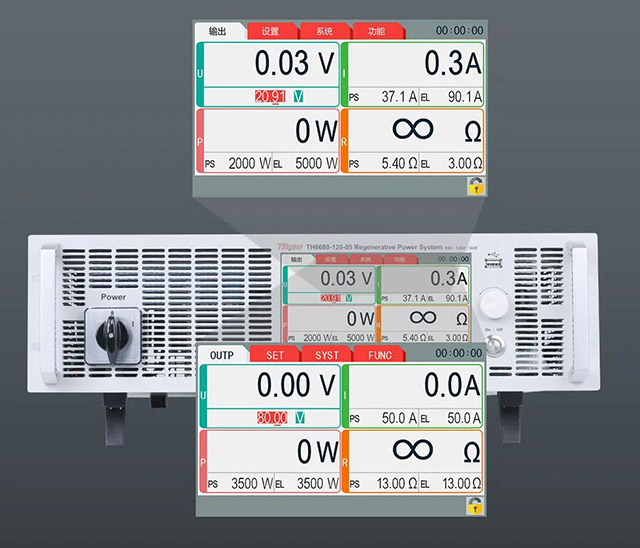 TH6600系列雙向回饋式大功率直流電源輸出和吸收電流時可快速無縫切換,有效避免電壓或電流過沖,適用于電池、電池封裝以及電池保護(hù)板等儲能設(shè)備測試。